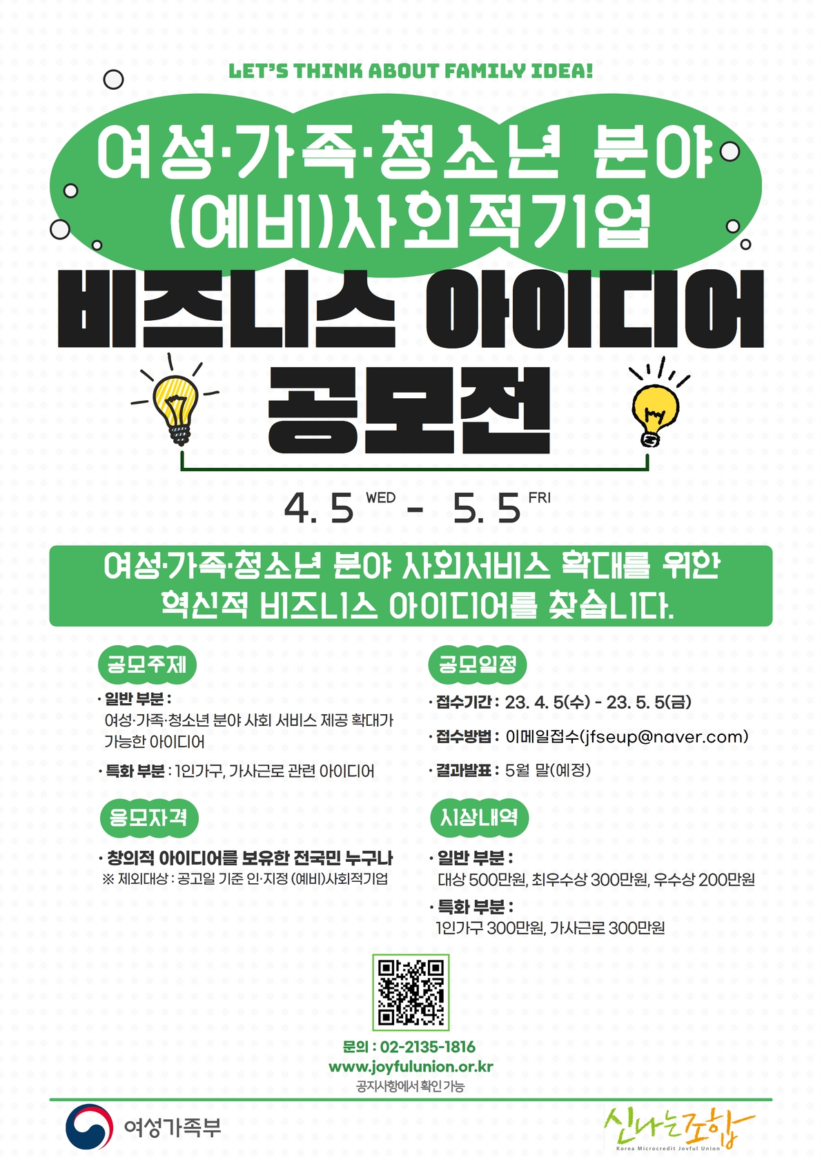 2023년 여성·가족·청소년 분야 (예비)사회적기업」 비즈니스 아이디어 공모전