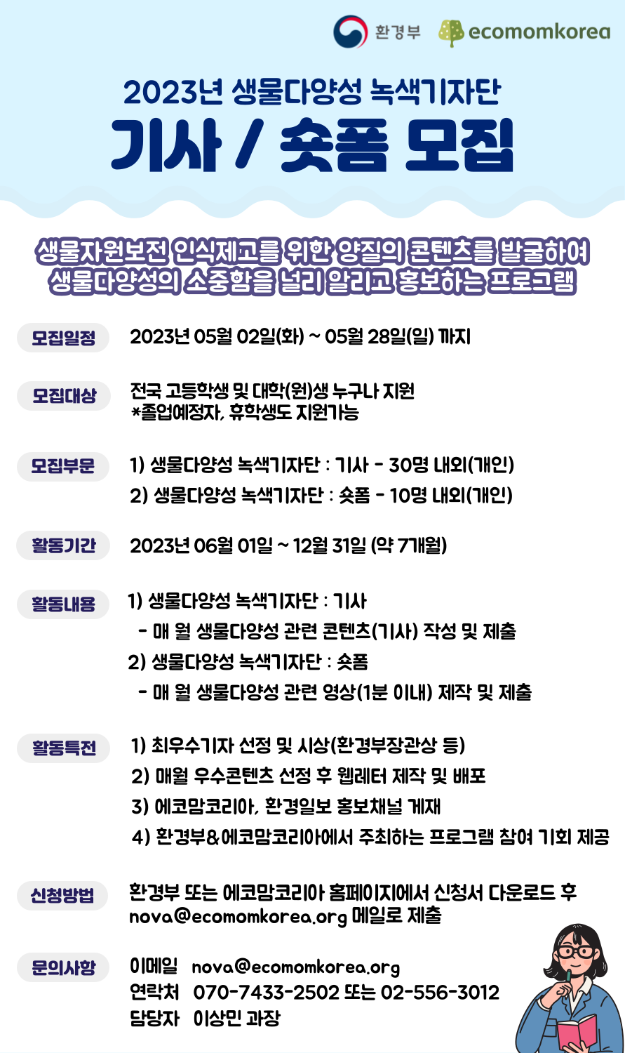 - 생물다양성 녹색기자단: 숏폼 - 10명 내외