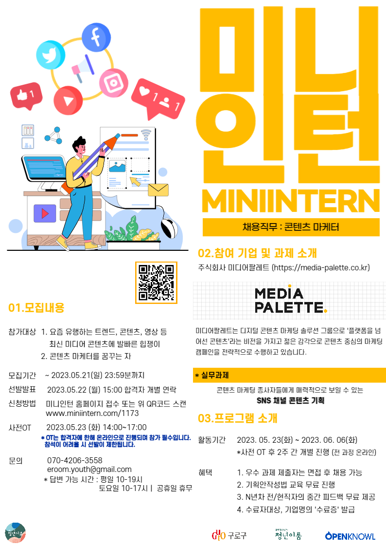 [미니인턴X미디어팔레트] 트렌드를 읽는 힙쟁이 콘텐츠 마케터 모집 ( \~5/21)