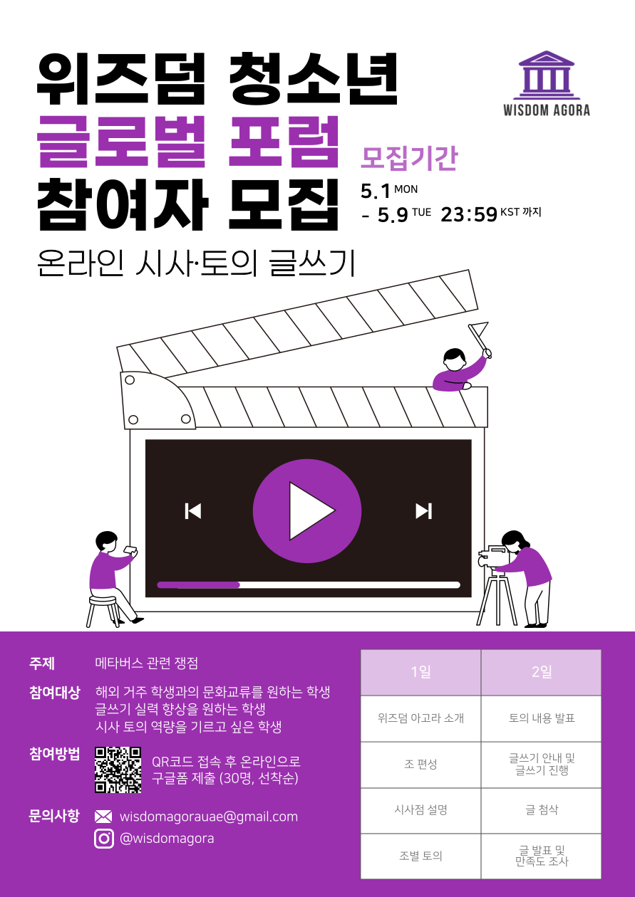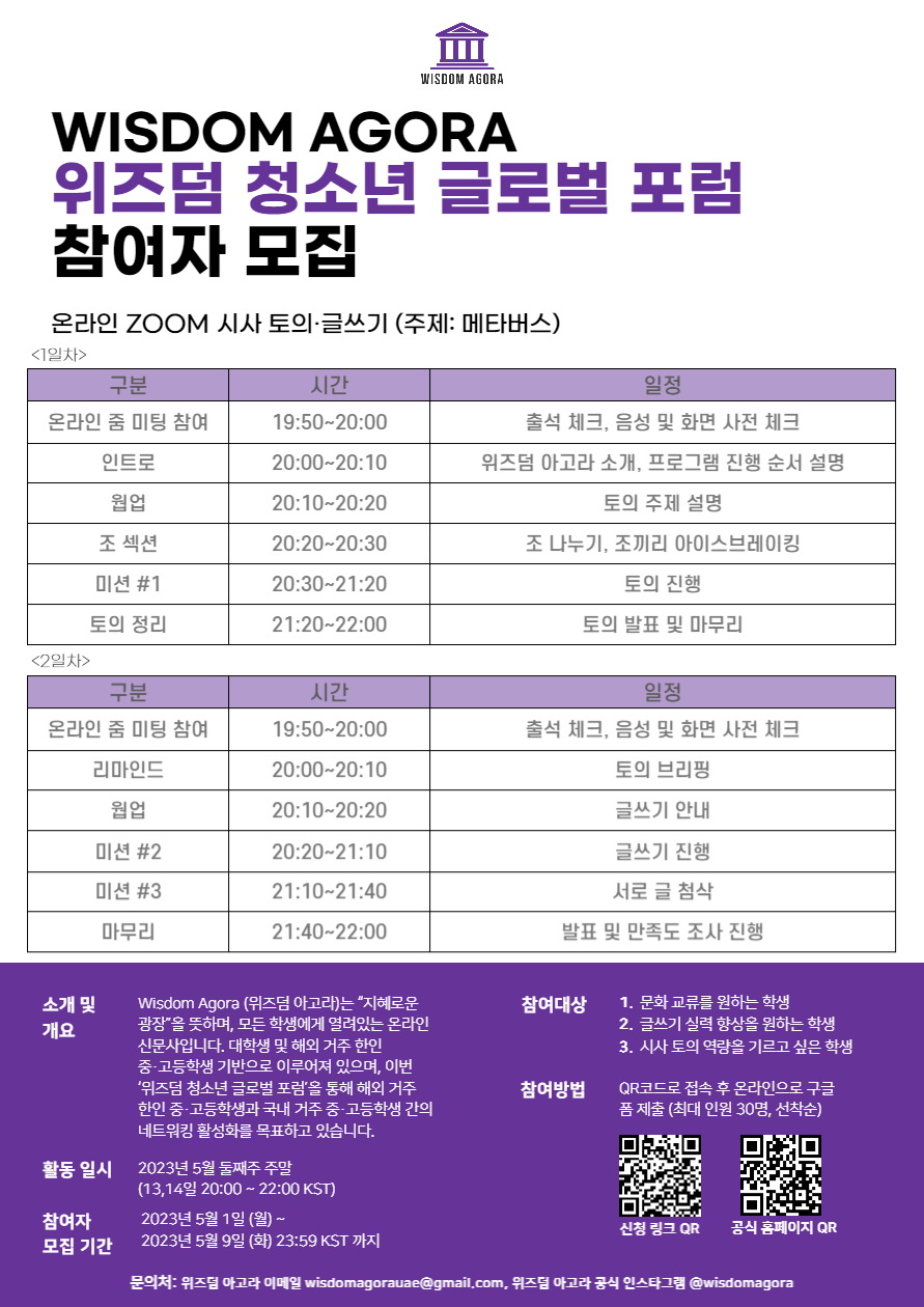 여러분들을 💫위즈덤 아고라 청소년 글로벌 포럼💫에 초대합니다!