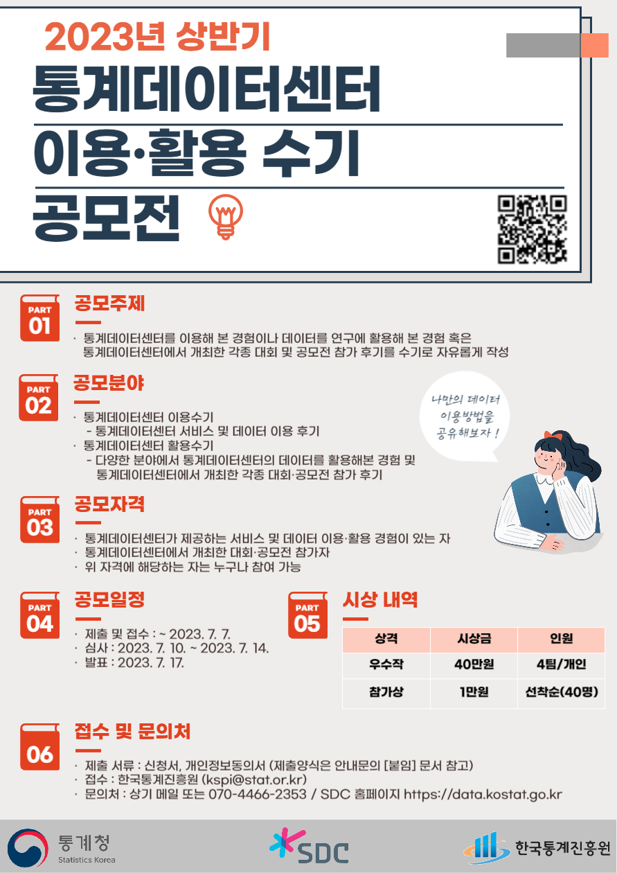 [통계청] 2023년 상반기 통계데이터센터 이용 · 활용 수기 공모전(신청기간 연장)