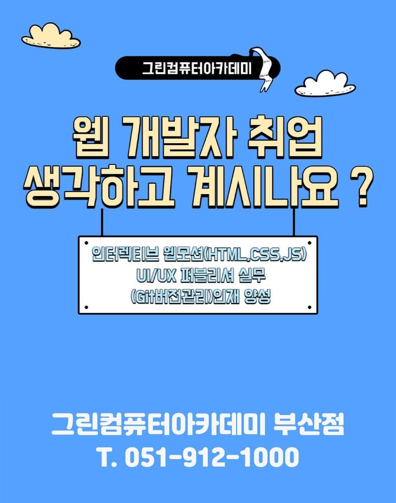 그린컴퓨터아카데미 부산점에서 수강해보세요 !