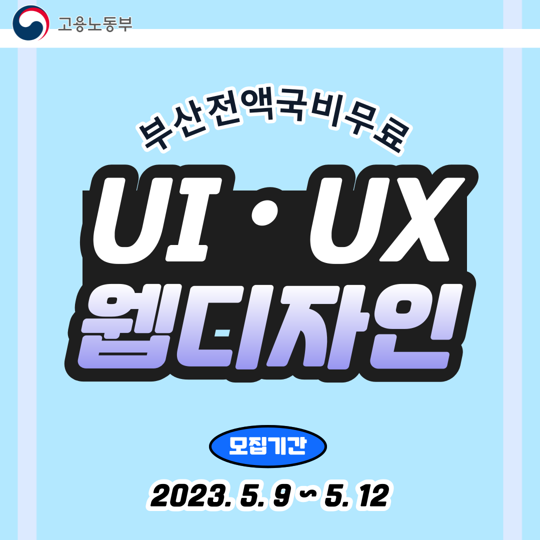 [부산전액국비&특별훈련수당 추가제공] 웹디자인/웹퍼블리싱 교육생 모집 ● 기간 및 일정 - 교육 기간 : 8월 23일 \~ 1월 25일\, 평일반(09:00\~17:30) ● 활동혜택 - 교육비 전액 국비무료지원 - 훈련장려금 최대 70만원 제공 - 특별훈련수당 11.6만원 추가 제공 - 전 교재 및 학습자료 무상제공 - 이력서클리닉 & 자소서 개별 첨삭지원 ● 지원자격 - 졸업자/졸업예정자/3학년 이상 휴학생 - UIUX와 웹퍼블리싱의 깊이있는 학습을 원하시는 분 - 포트폴리오를 완성하고 취업을 준비하고 싶은 분 ※ 지원 유의사항 - 오프라인 수업으로 진행됩니다. (부산) ● 모집인원 - 선발 인원 : 20명 - 결과 발표 : 수강신청 후 개별 안내 ● 신청방법 - 홈페이지에서 온라인 수강신청 https://www.jobyj.co.kr/ ● 문의 유선문의: 051)851-7887 카카오톡 :edu8989