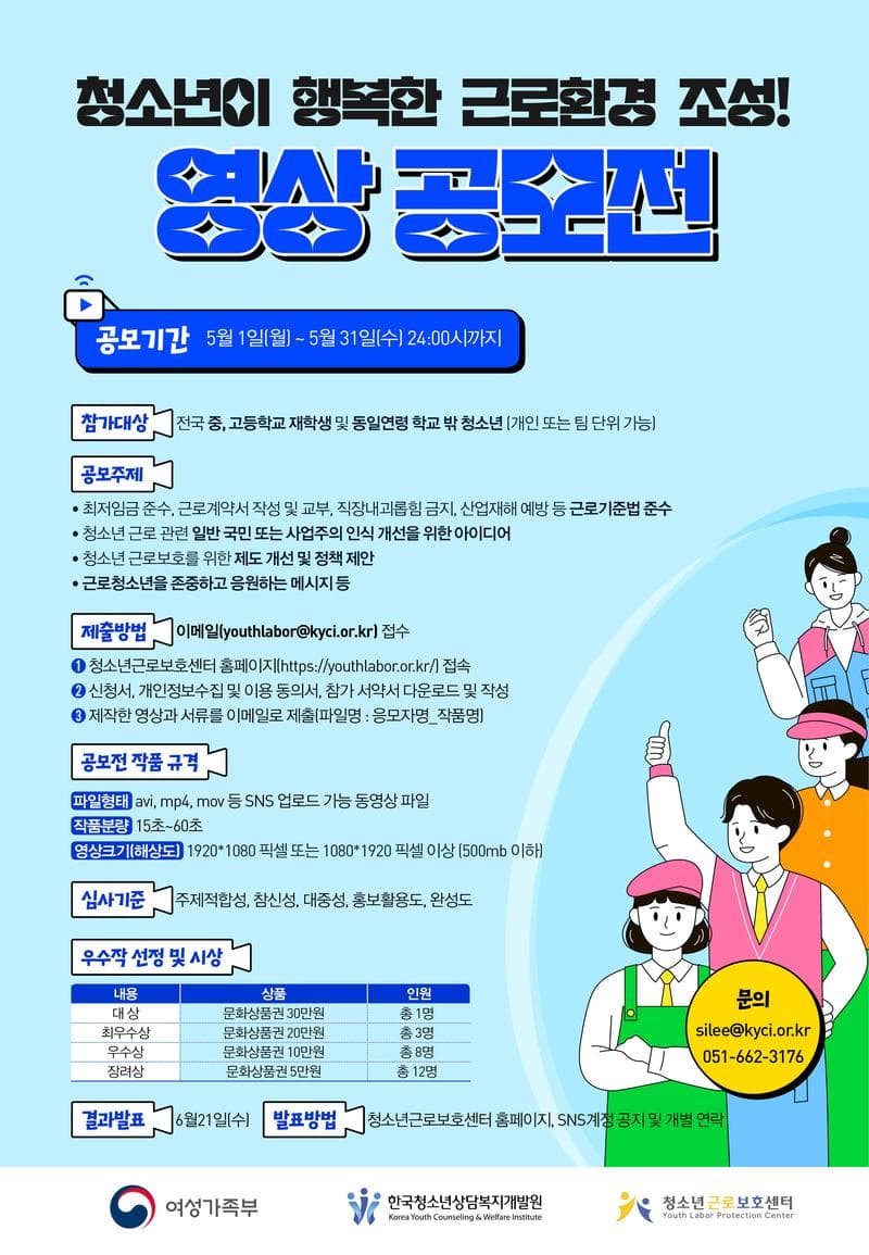 ❏ 공 모 명 : 청소년이 행복한 근로환경 조성 영상 공모전