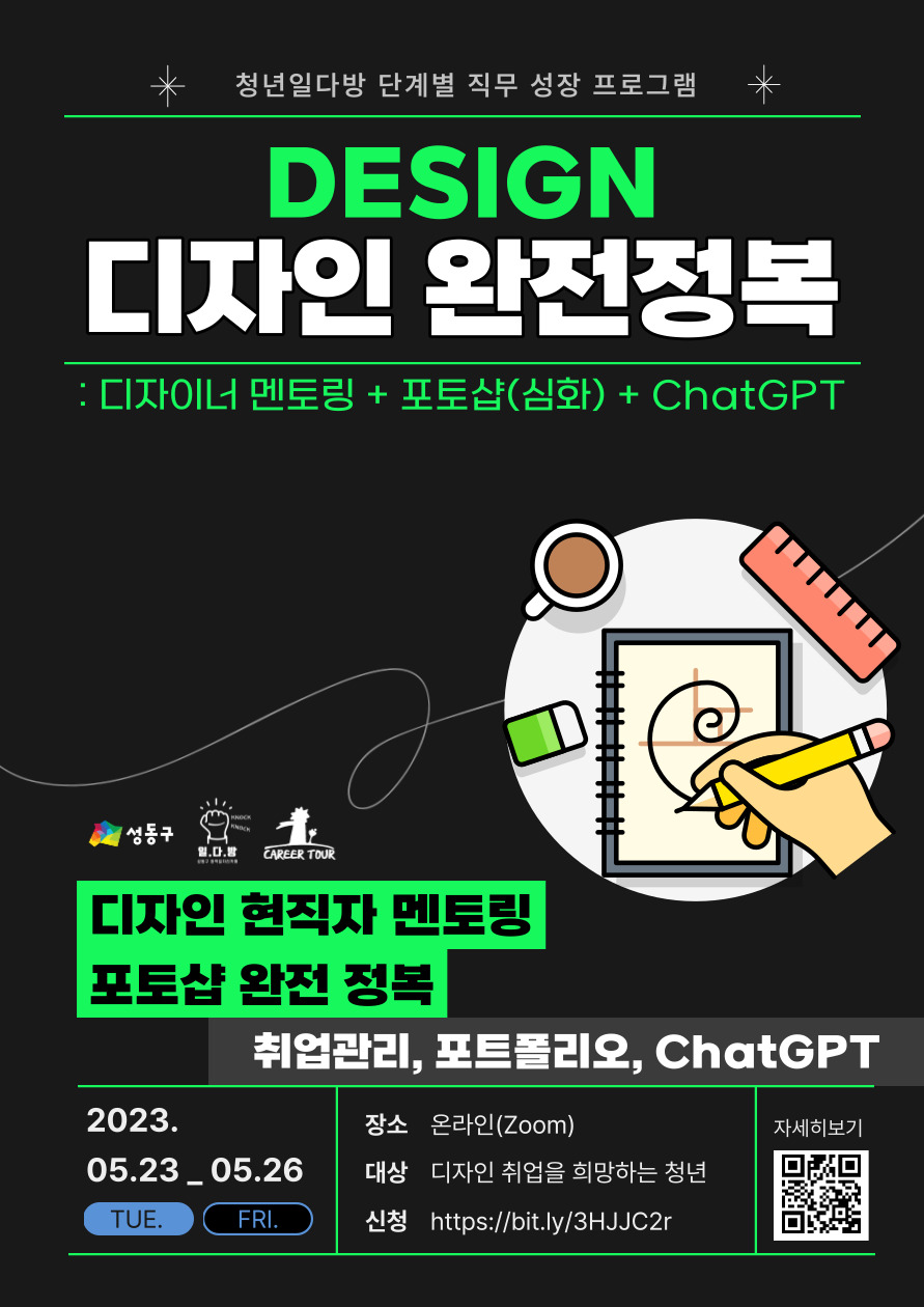 ★ 다양한 디자인 현직자 멘토링 ★ 취업을 위한 노션으로 포트폴리오 만들기, ChatGPT, 스마트폰 사진보정 ★ 콘텐츠 제작을 위한 포토샵 완전 정복!!