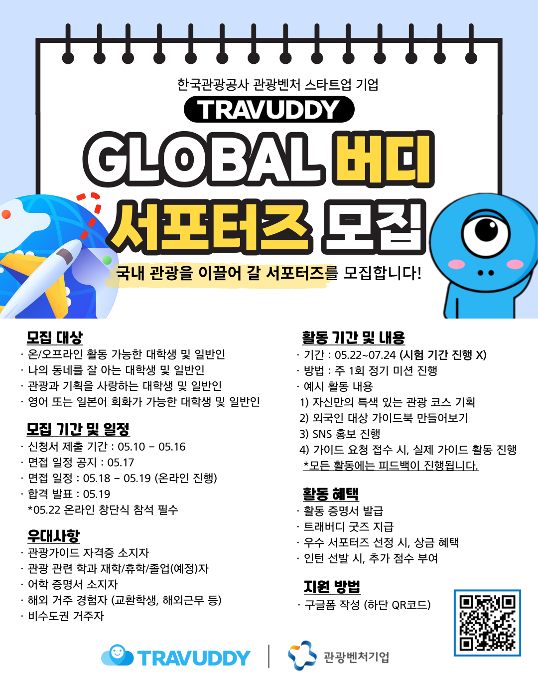 [트래버디] 2023 트래버디 GLOBAL 버디 서포터즈 모집 트래버디(TRAVUDDY)에서 GLOBAL 버디가 되어줄 서포터즈를 모집합니다!