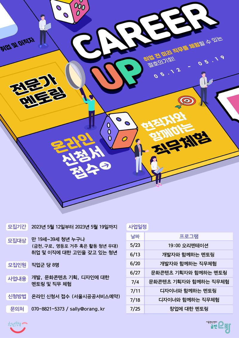 Career Up에서 함께해요!! 현재 근무하고 있는 직업군과 함께 멘토링을 진행하고 직무 체험까지 할 수 있는 절호의 기회!