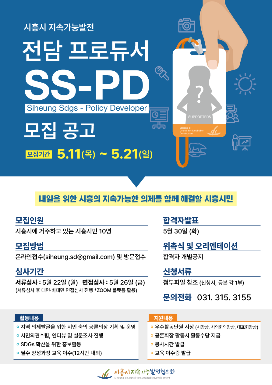 시흥시지속가능발전협의회 의제발굴단 "시흥시 지속가능발전 전담 프로듀서 (SS-PD)”를 모집합니다 !