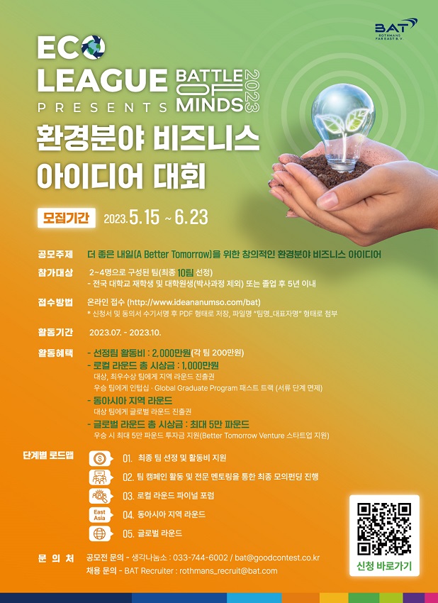 ○ 사 업 명 : BAT로스만스 환경분야 비즈니스 아이디어 대회 (2023 Eco League presents Battle of Minds)