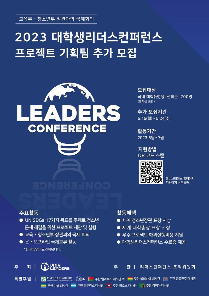 주최 \| 유니브리더스 주관 \| 리더스컨퍼런스 조직위원회 특별 후원 \| 한국청소년단체협의회\, SDGS YOUTH\, 주한 벨라루스 대사관\, 주한 콩고민주 대사관\, 주한 온두라스 대사관\, 주한 라오스 대사관\, 주한 잠비아 대사관