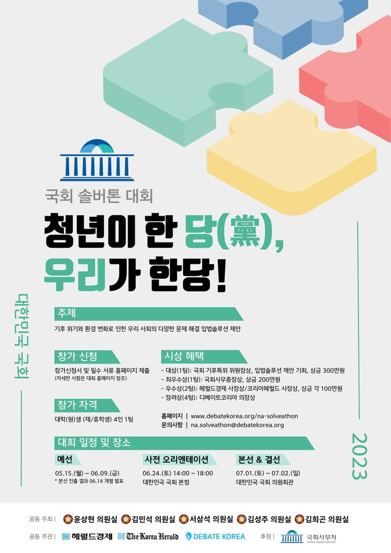 청년의, 청년에 의한, 청년을 위한 기후환경 입법 배틀 2023 국회 솔버톤 대회 : 청년이 한 당(黨), 우리가 한당!