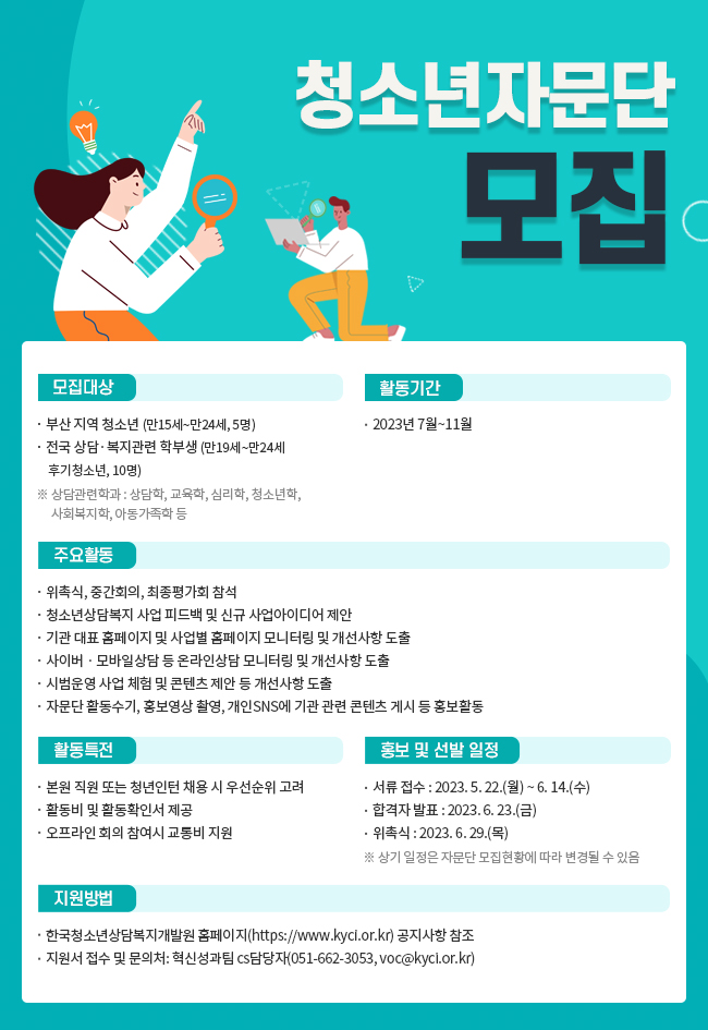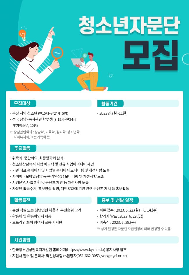 2023년 한국청소년상담복지개발원 청소년자문단 모집
