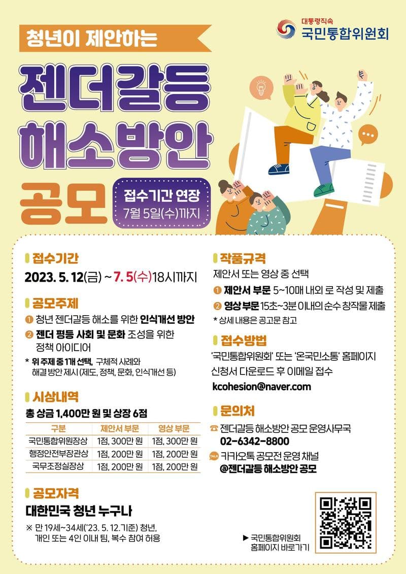 ○ 문의 - 젠더갈등 해소방안 공모 운영사무국 ☏ 02-6342-8800 - 카카오톡 채널 "@젠더갈등 해소방안 공모"