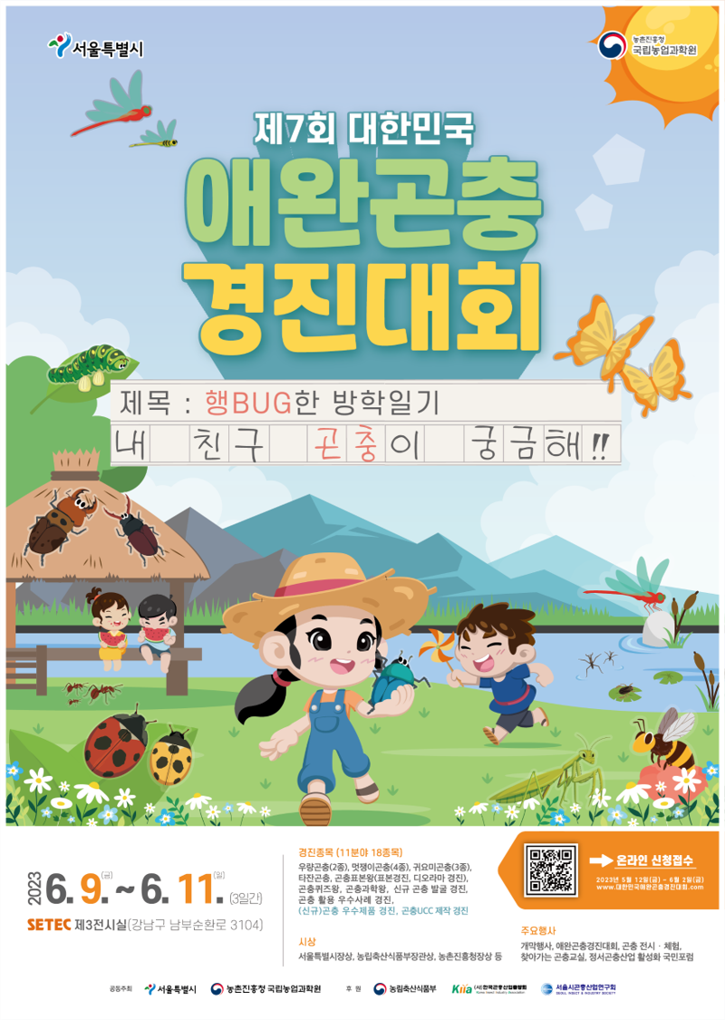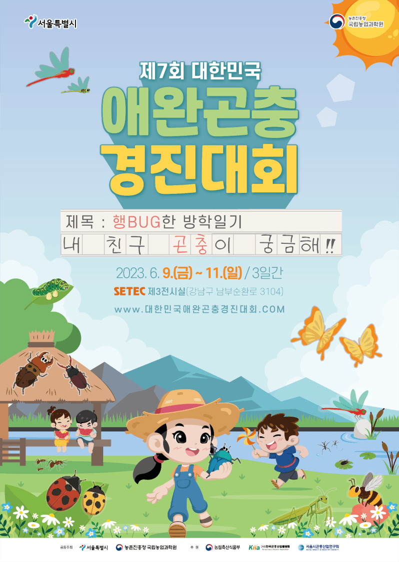 2️⃣ 제7회 대한민국 애완곤충경진대회 2023년 6월 9일(금) \~ 11일(일) / 3일간 SETEC 3전시장(학여울역) ※ 일반 관람은 사전접수 없이 무료입장