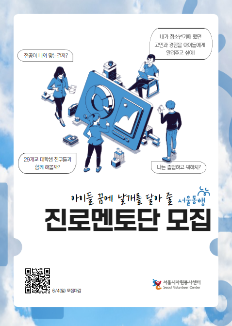 - 서울 지역에서 활동이 가능하고\, - 대학생활을 통해 얻은 나의 경험\, 학창시절 나의 진로고민을 나누고 싶은 - 아동\, 청소년의 진로도\, 나의 진로도 디자인하고 싶은 대학생\, 대학원 누구나!