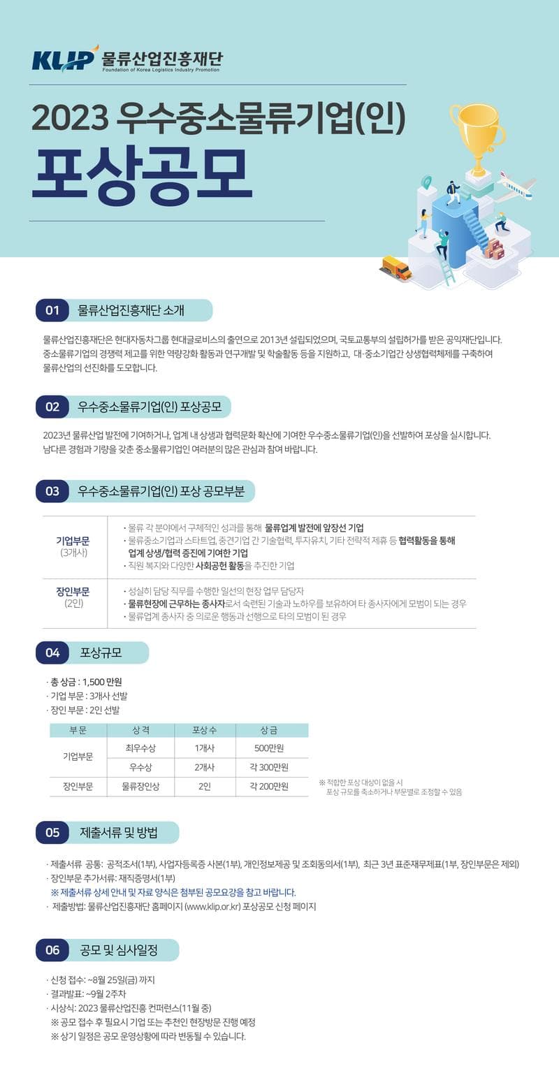 ○ 공모개요 - 2023 우수중소물류기업(인) 포상공모를 개최합니다. 많은 관심 부탁드립니다.