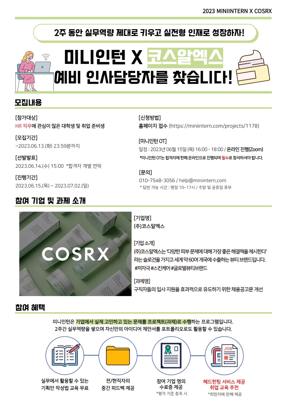 ▷기타/문의 - E-MAIL : help@miniintern.com - TEL : 010-7548-3056(평일 10시 \~ 18시/주말 및 공휴일 휴무)