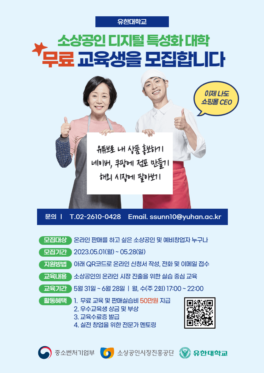 중소벤처기업부, 소상공인시장진흥공단, 유한대학교