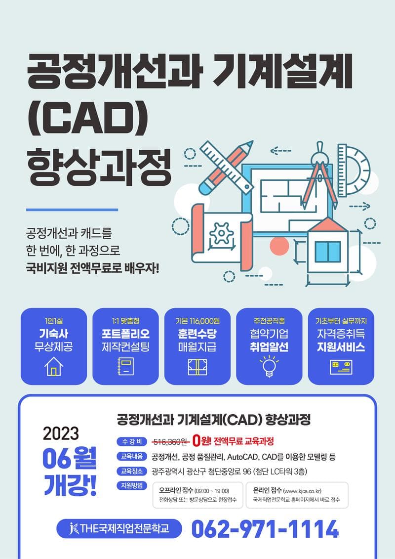 - 온라인수강신청 및 문의 : cd.kjca.co.kr (자세히 보기) - 방문/전화 상담 : 광주광역시 광산구 첨단중앙로 96 LC타워 3층 (062-971-1114)