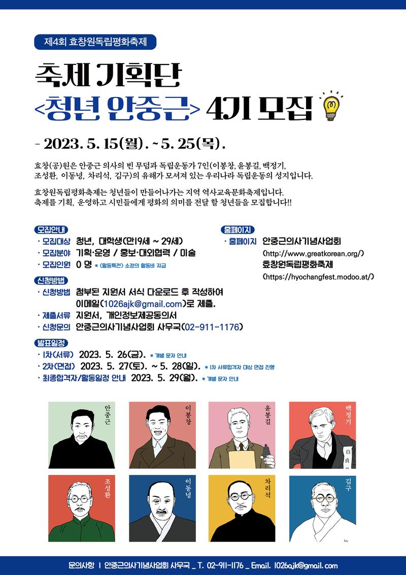 제4회 효창원독립평화축제 기획단 <청년안중근> 4기 모집