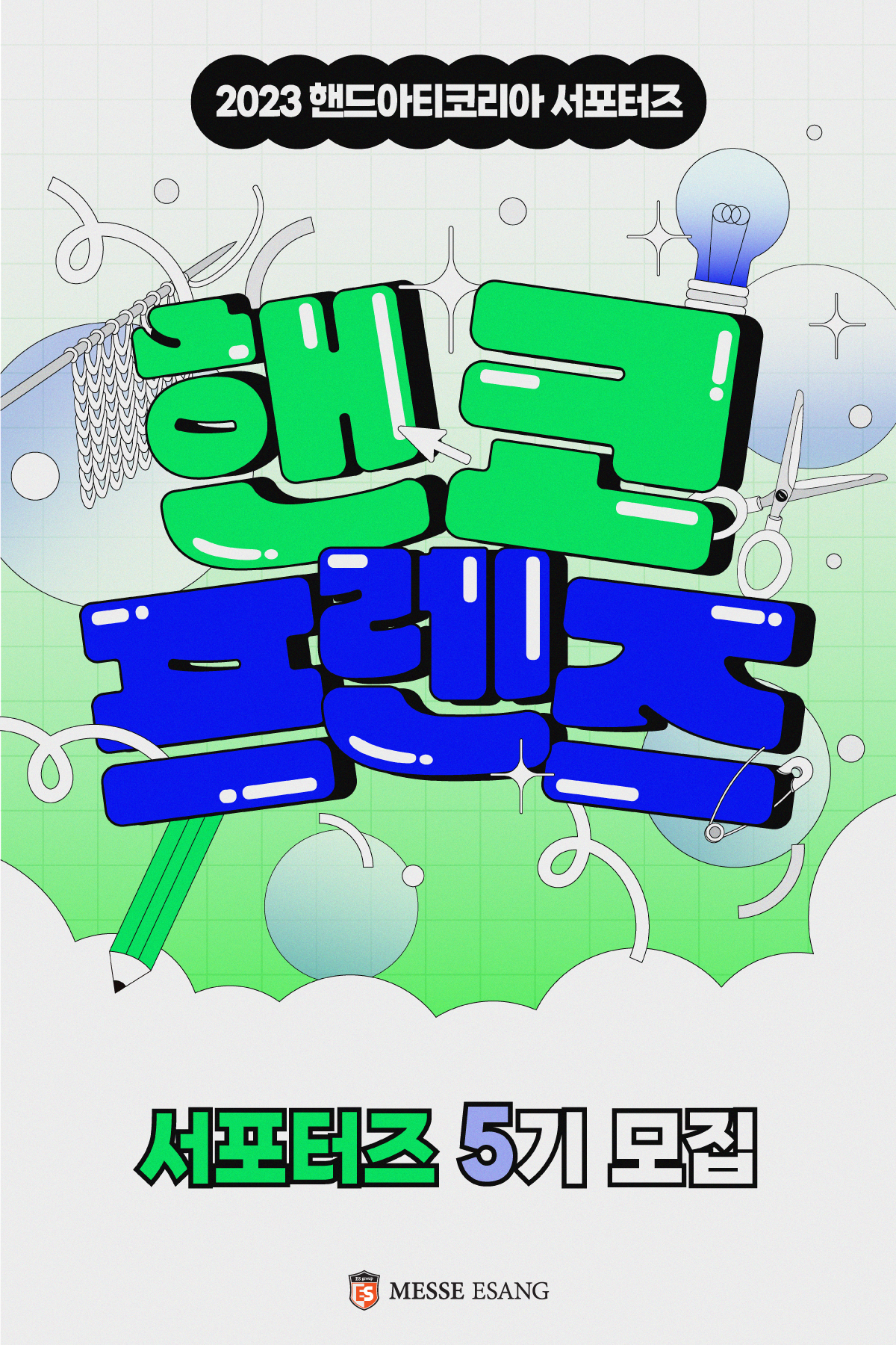 ■ 활동 혜택 1. 2023 핸드아티코리아 전일 입장 가능 *본인만 해당 2. 우수활동자 포상 3. 차기년도 전시 무료 초청장 증정 * 2024년 코엑스 핸드아티코리아 4. 2023 메쎄이상 전시 무료 초청장 증정 (1회)