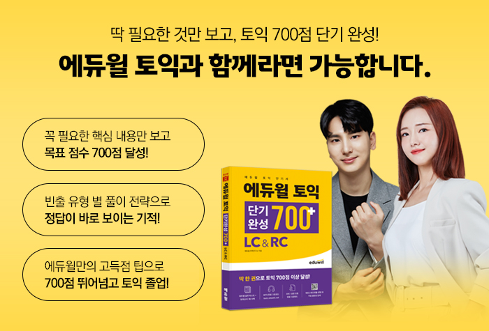 안녕하세요! 딱 필요한 것만 보고, 4주 끝장! 에듀윌 토익입니다 😊