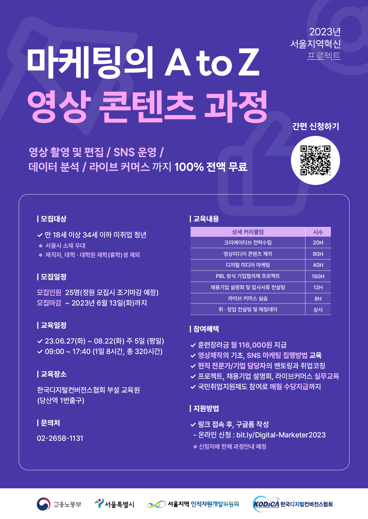 실무중심 교육부터 취업연계까지 한방에 끝내는 무료교육! 디지털 미디어 마케터 양성과정 (\~06.13)