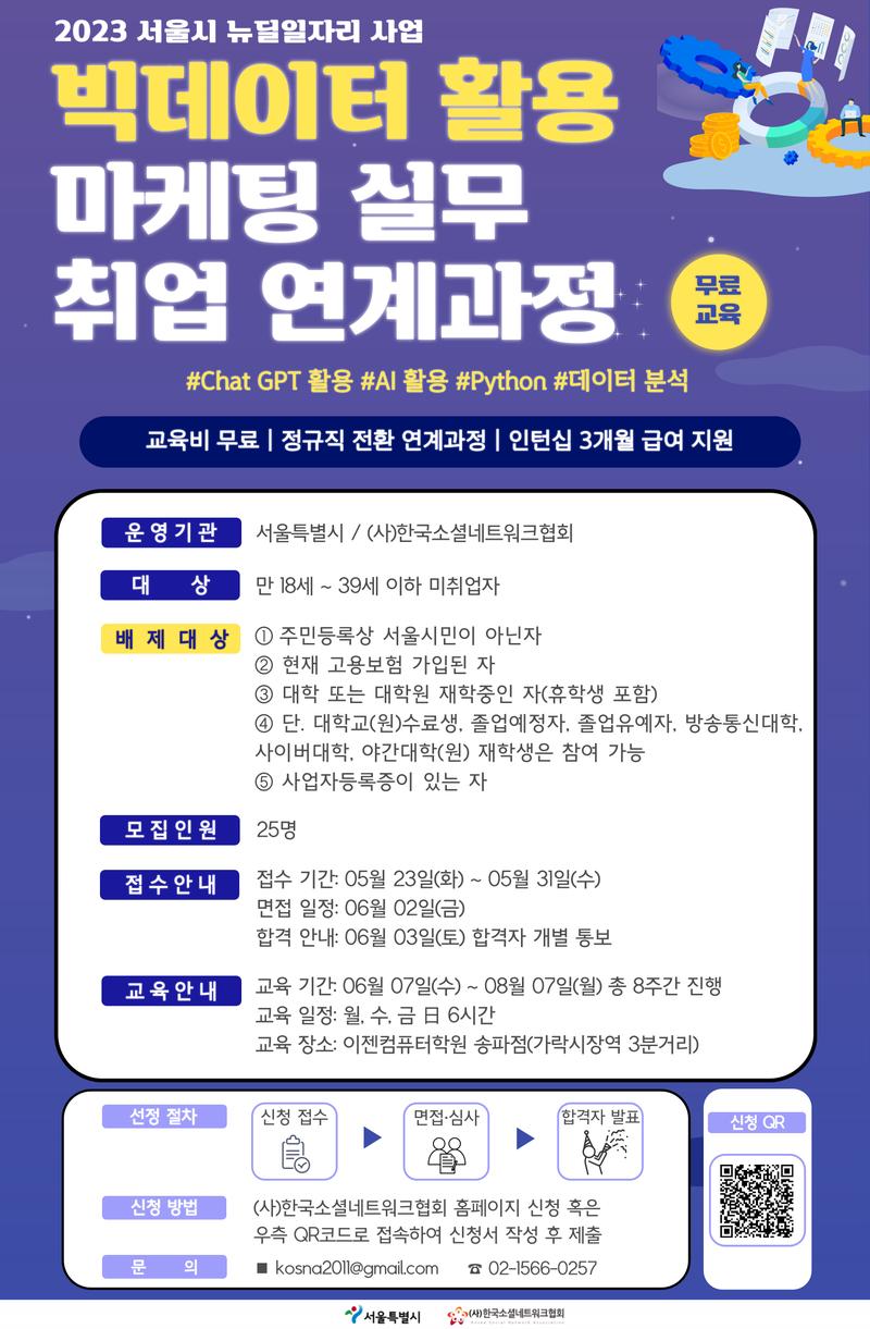 - 본 교육은 서울시 뉴딜일자리 사업으로서 서울시가 주관하고 SNS협회인 (사)한국소셜네트워크협회가