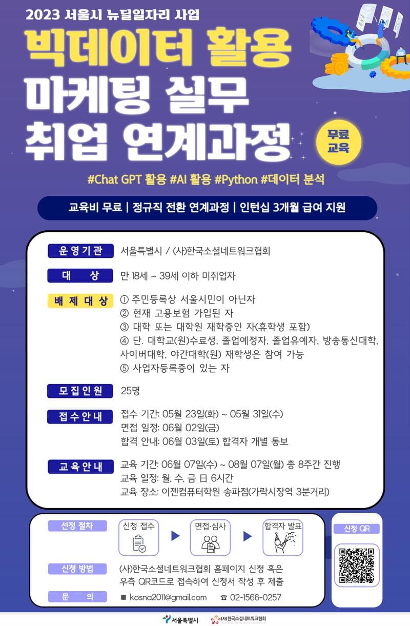`빅테이터마케팅 분야` 취업을 희망하는 서울시 청년 구직자를 대상으로 실무 중심 프로젝트교육과
