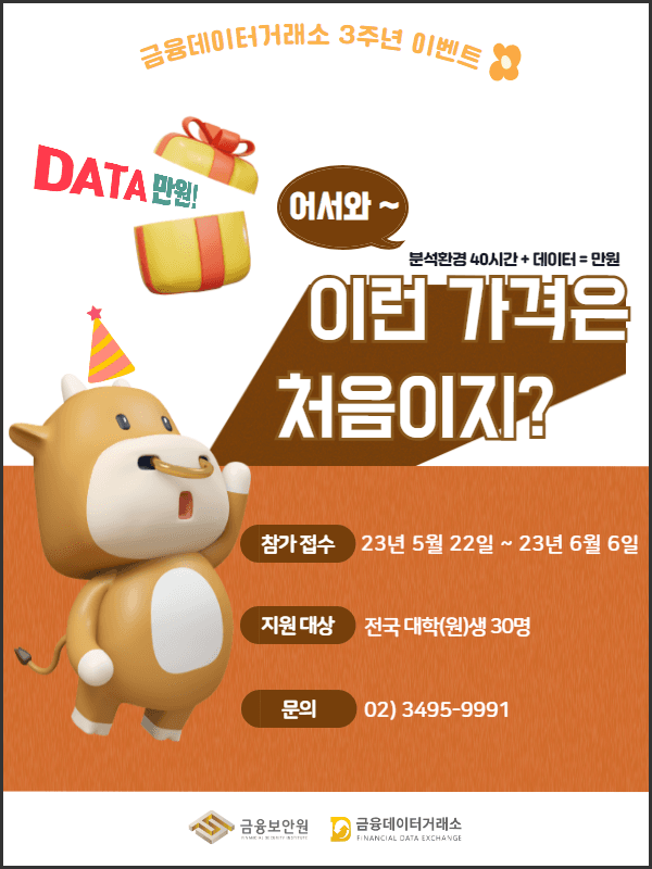 금융데이터거래소 출범 3주년을 맞이하여 데이터 분석 이벤트 「어서와! 이런 가격은 처음이지?」를 진행합니다.