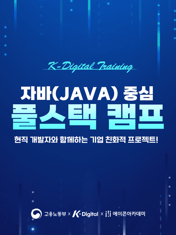 자바(JAVA) 중심 풀스택 캠프 프론트엔드 + 백엔드 프로젝트중심교육 현직개발자 멘토링 취업연계 비전공자도 가능 모집인원 25명 자세한 사항은 홈페이지 참고 바랍니다. 홈페이지바로가기