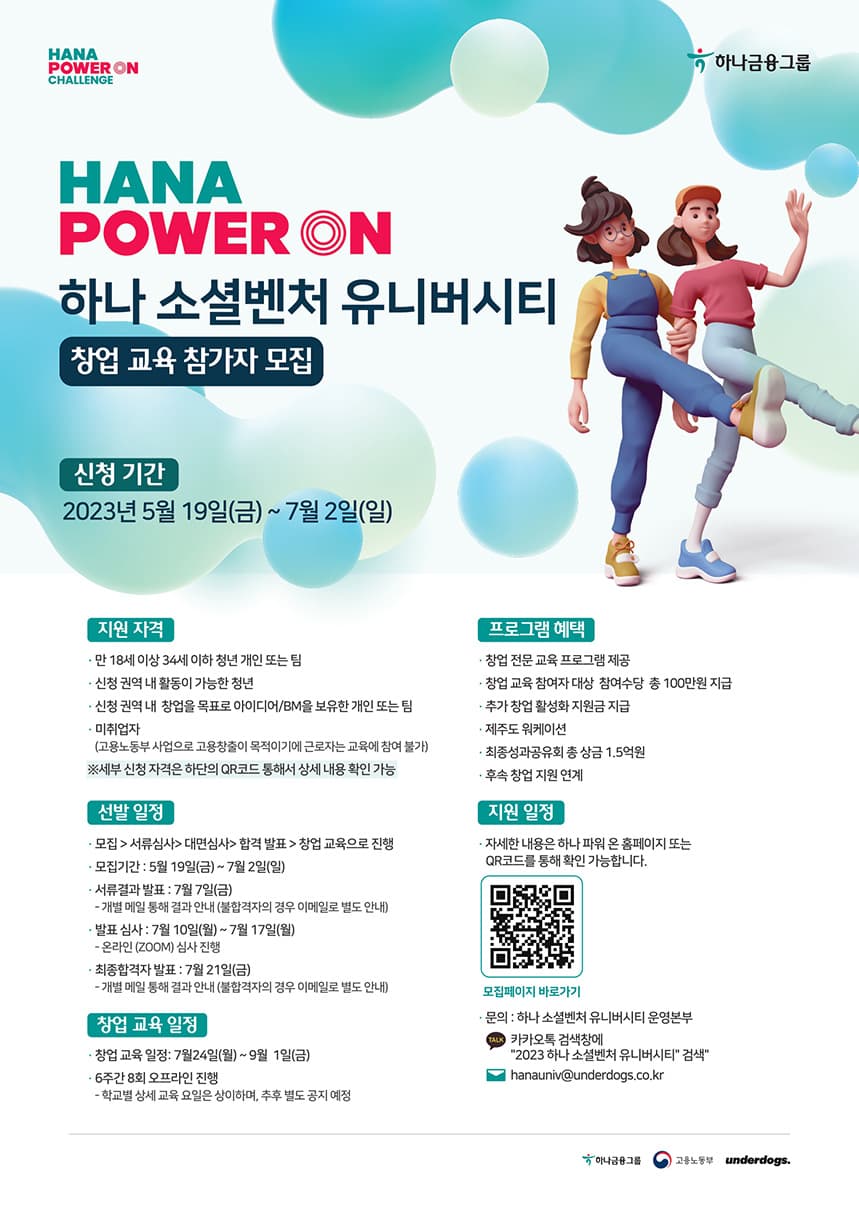- 이메일 : 하나 소셜벤처 유니버시티 운영본부 (hanauniv@underdogs.co.kr)