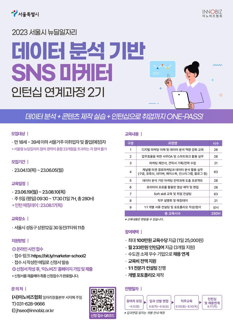 ■ 지원방법 1) 접수링크: https://bit.ly/SNS-MARKETER2 2) 신청서 작성 후, 이노비즈 홈페이지 가입 및 제출 *신청서 제출해야 최종 신청접수 완료