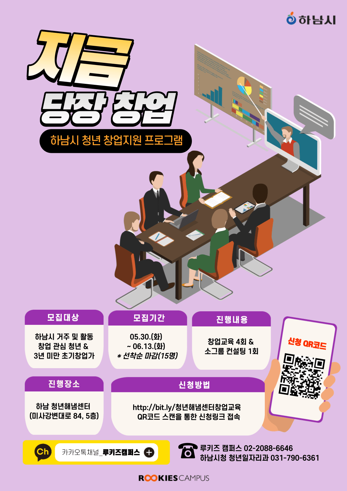 스타트업 창업? 법인사업? 개인사업? 창업을 희망하지만 어떻게 시작해야 하는지 잘 모르겠다? 취업 대신 창업을 원하지만 불확실함에 두렵다? 사업자를 내고 창업을 했지만 정부지원 사업지원부터 노무, 세무까지 배워야 하는 게 많다? 그런 여러분을 위한 창업지원 프로그램!