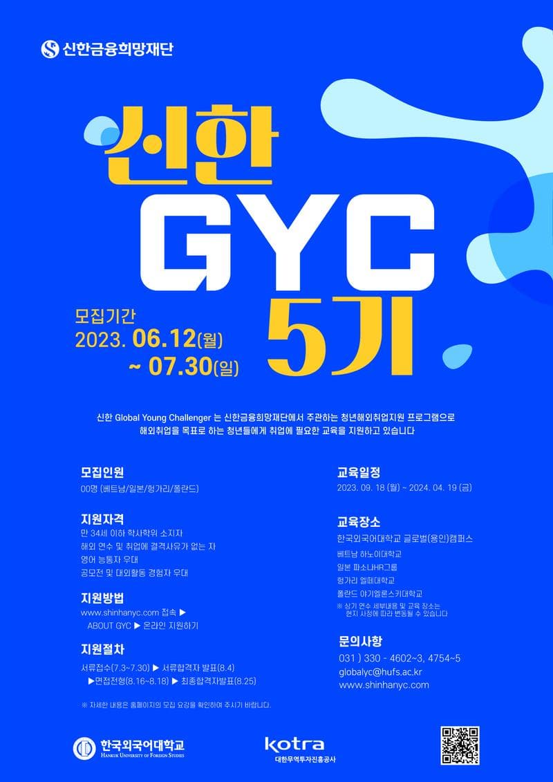 6. 문의처: 신한 GYC 운영본부(Tel. 031-330-4754\~5\, 4602\~3 / E-mail. globalyc@hufs.ac.kr)