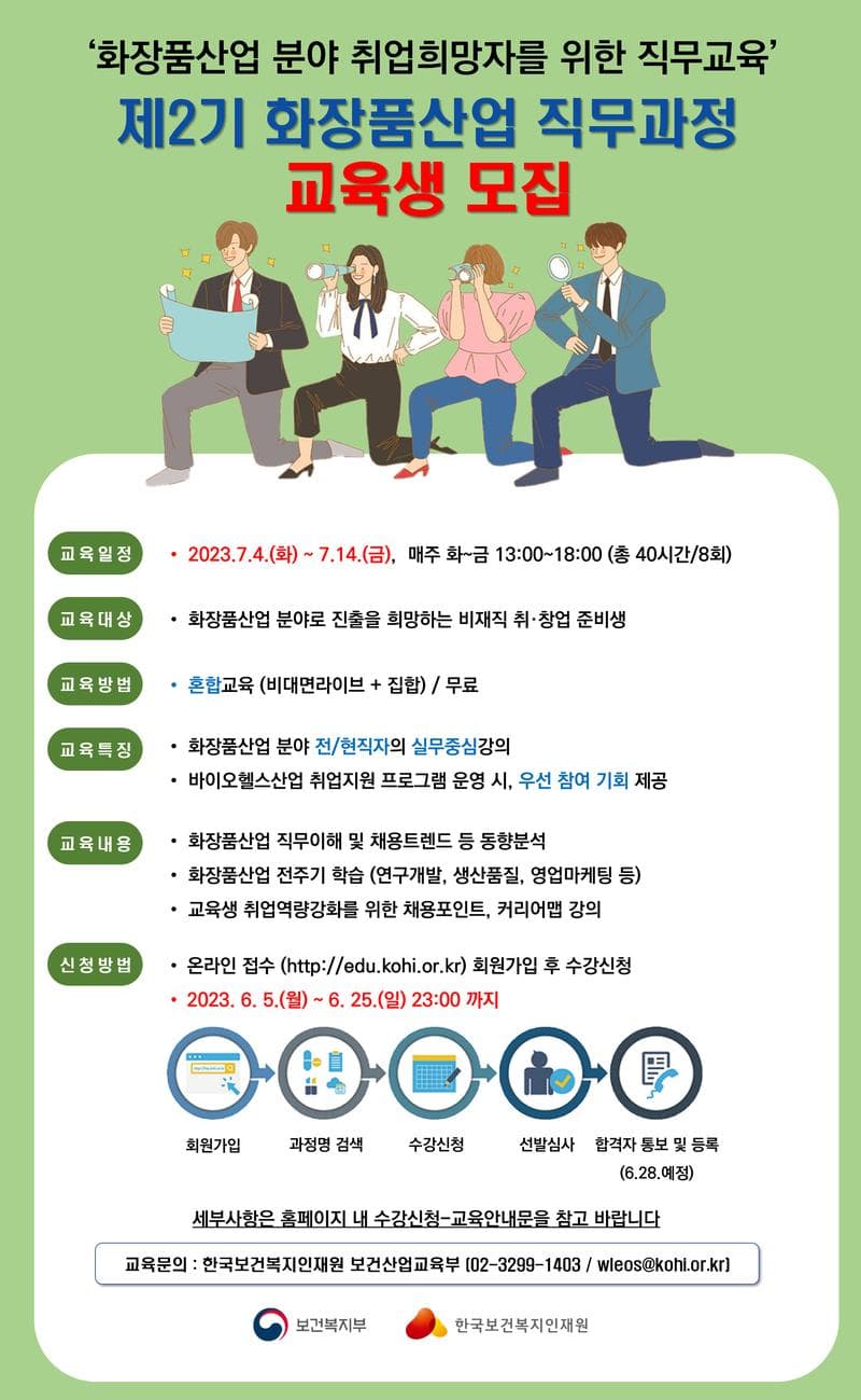 한국보건복지인재원에서 제2기 화장품산업 직무과정 교육을 실시합니다!!