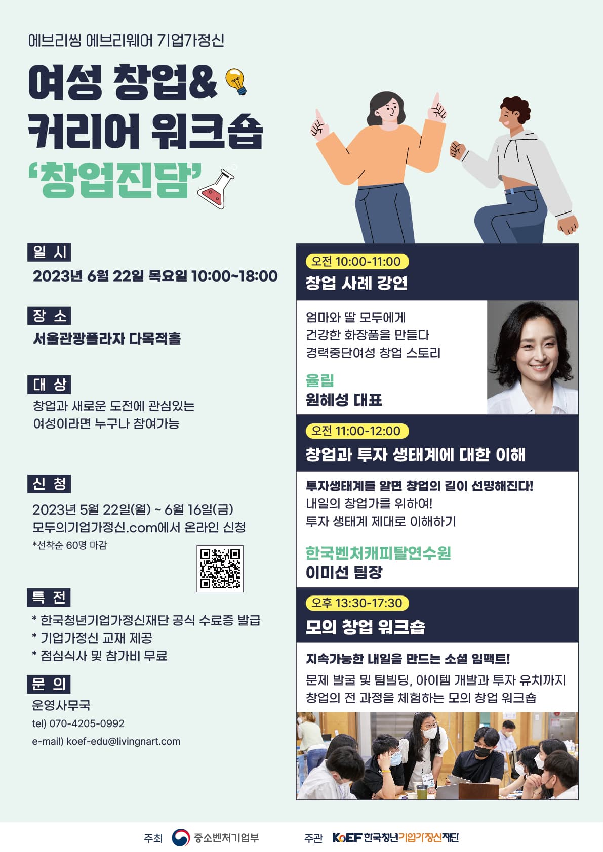 참여대상 : 여성(예비)창업자, 창업을 계획하고 있는 여성, 여성 브랜드 운영자, 스타트업과 투자 생태계를 제대로 이해하고 싶은 관련 종사자 등