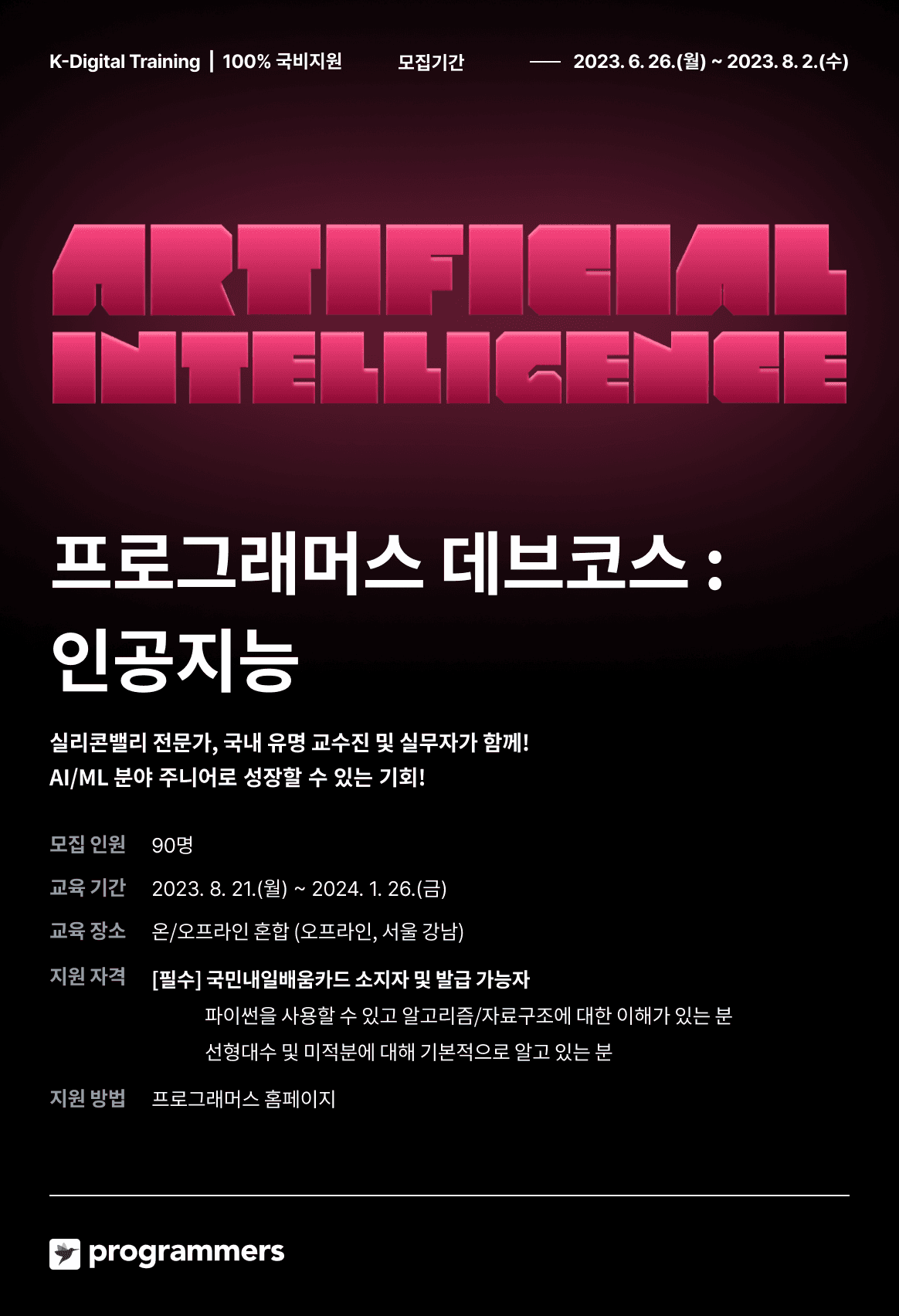 📍교육 기간 : 2023.8.21.(월) \~ 2024.1.26.(금) 📍교육 장소 : 온/오프라인 혼합 (오프라인, 서울 강남)