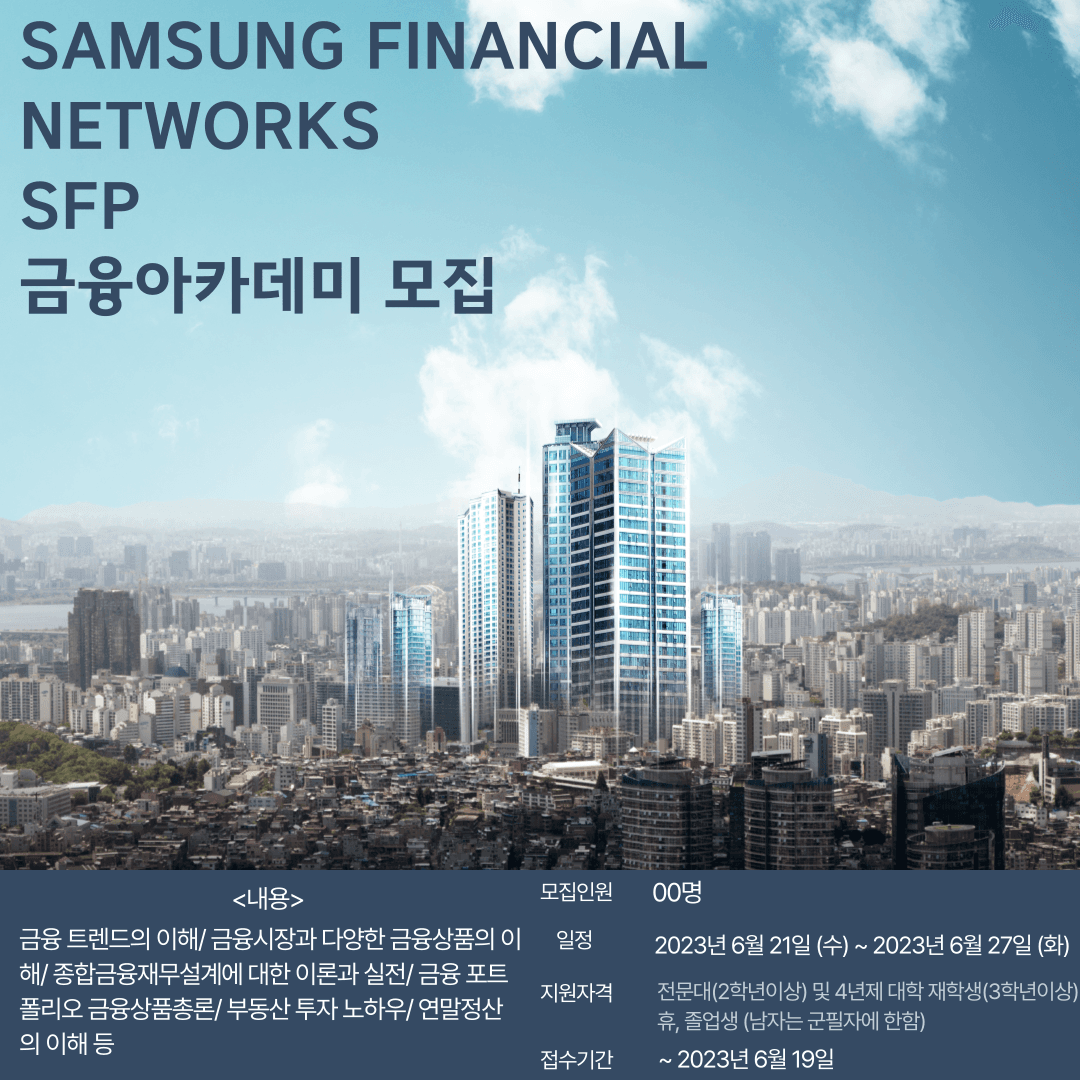 ■ 활동혜택 - 삼성생명 ‘금융아카데미’과정 수료증 - 실무경험과 현직자 멘토링