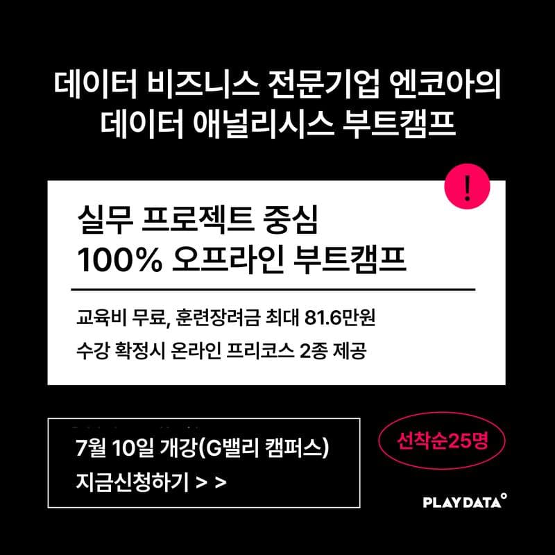 ■ 교육 문의 전화 : 02-754-7302(1번) 실시간 채팅 상담 : https://playdata.channel.io