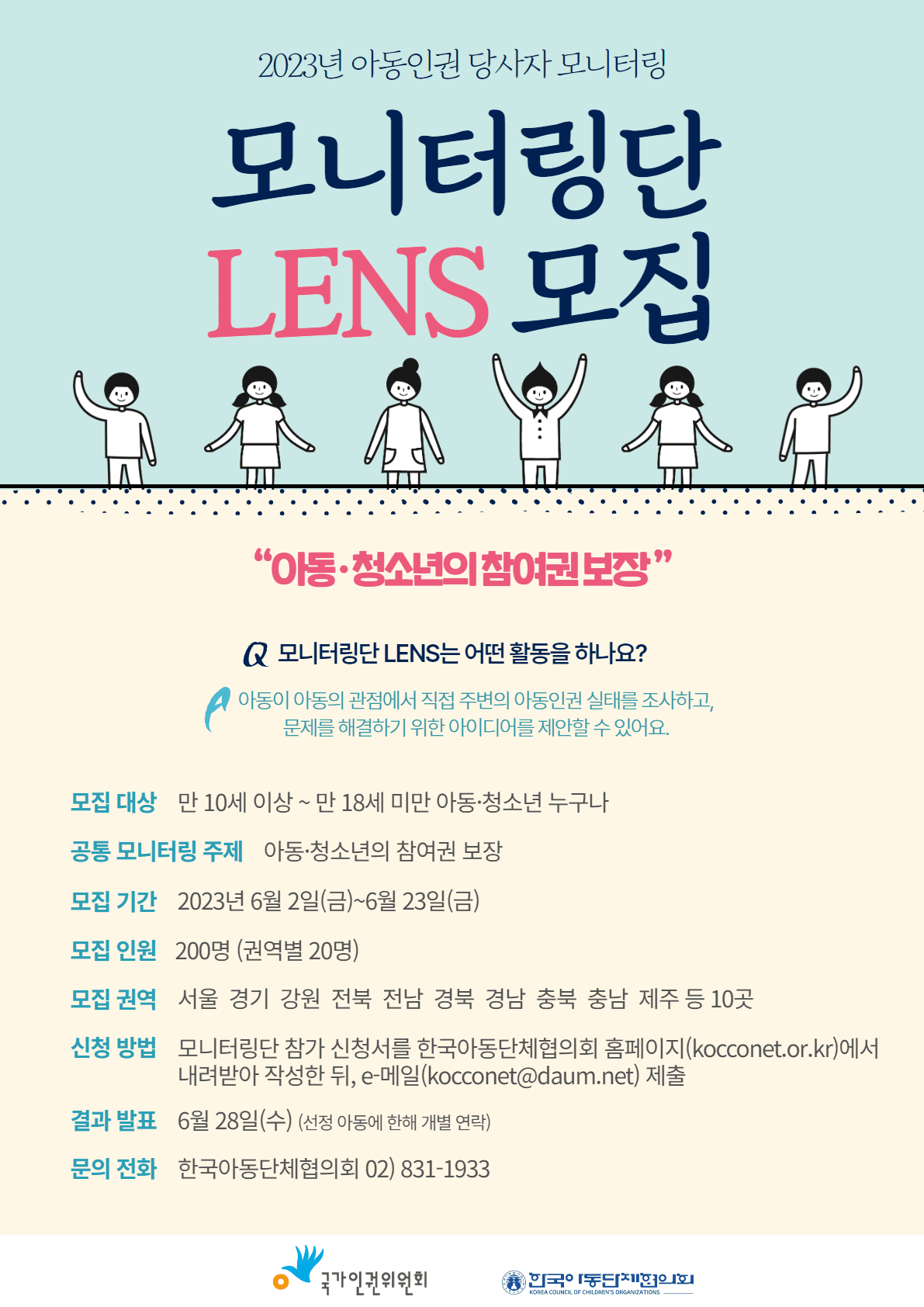 ※2023년 아동인권 당사자 모니터링단 'LENS' 모집 공고 안내※