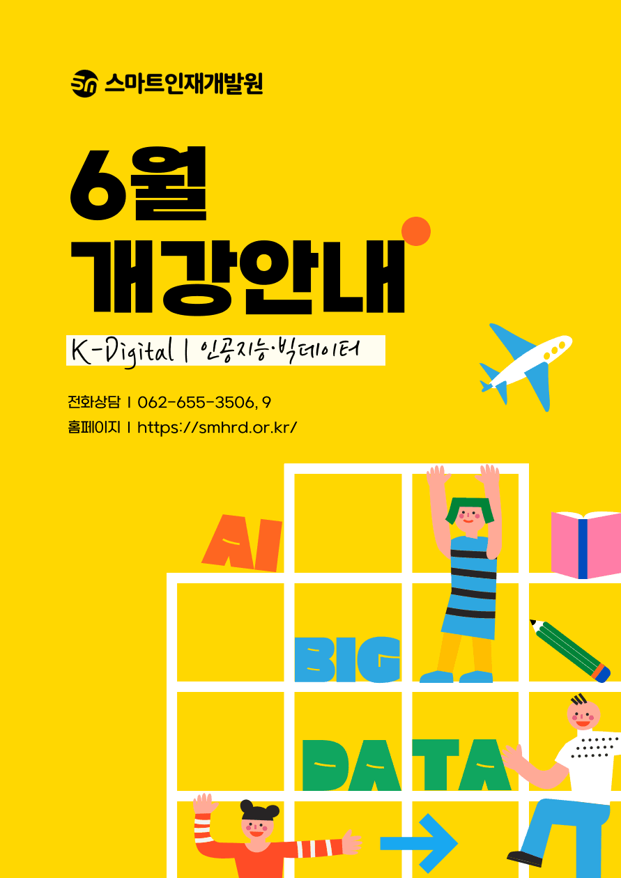 6월 20일 개강! ✨✨ . 🐥 빅데이터 분석서비스 개발자과정 🐥 인공지능 융합서비스 개발자과정 . . 기초부터 실무까지 탄탄하게 무료로 배울 수 있는 취업연계과정! . . 신청하러가기