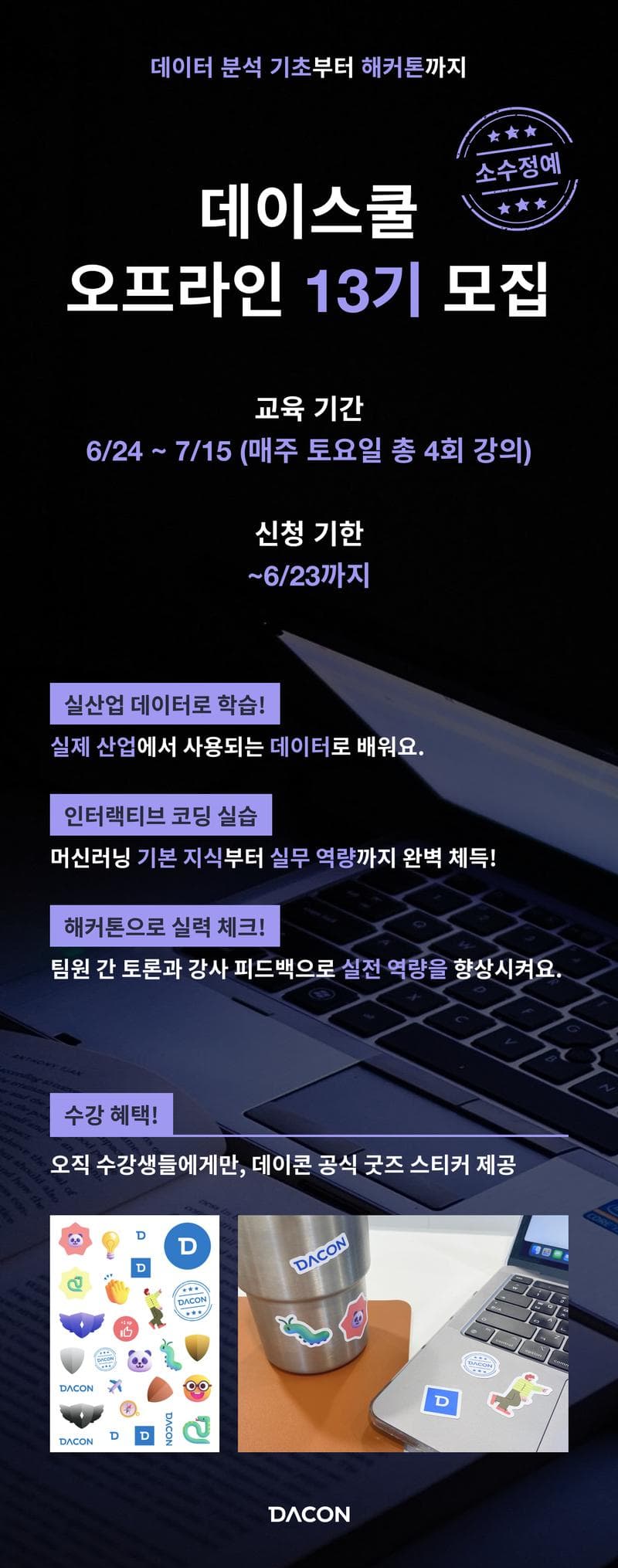 데이콘 공식 스티커, 수료증, 해커톤 상위 3팀 수상 인증서 발급