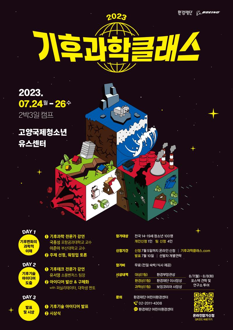 ✅ 기후과학클래스 일자 : 2023년 7월 24일(월) \~ 26일(수), 2박 3일 장소 : 고양국제청소년 유스센터 (고양시 일산동구 애니골길 97)