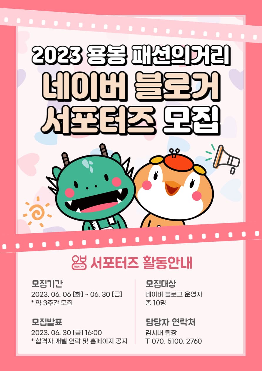 ✅ 문 의 패션의거리 네이버 블로거 서포터즈 운영 담당자 김시내 팀장 (☎ 070-5100-2760)