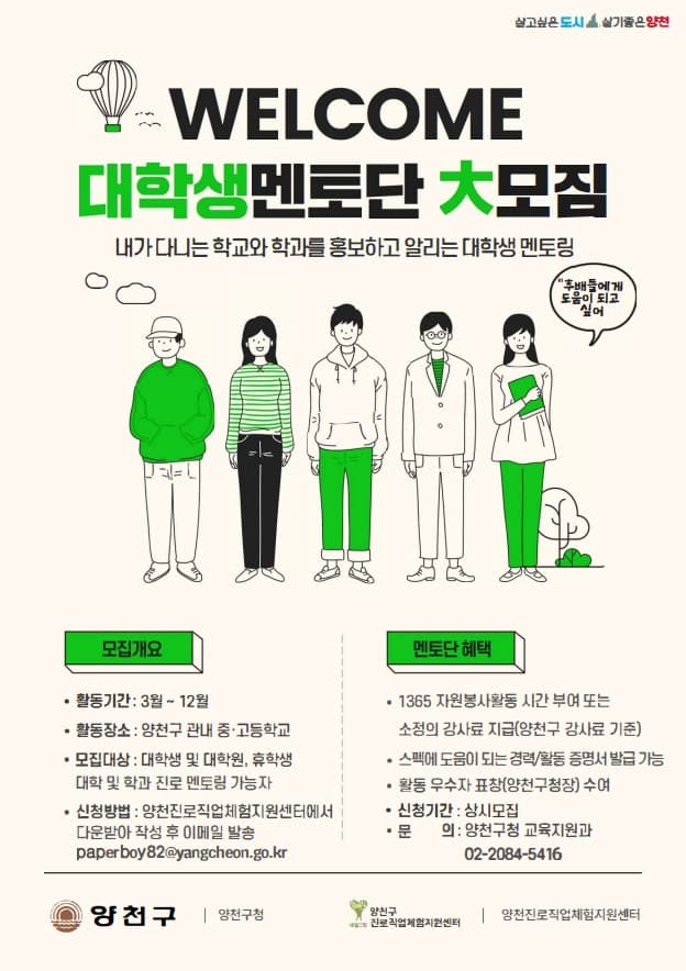 2023년 양천구 찾아가는 대학생멘토단 모집!!