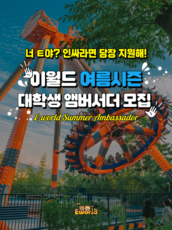 [이월드 대학생 앰버서더 1기 모집] 2023 여름시즌 이월드 대학생 엠버서더 1기를 모집합니다! ■ 모집일정 - 모집기간: 6월 30일 \~ 7월 12일 - 합격자 발표: 7월 13일 합격자 발표 후 활동 진행 예정(개별 연락) ■ 모집대상 - 대학생(휴학생 및 대학원생 모두 가능) - sns(인스타/블로그/틱톡/유튜브) 운영 필수(희망 분야에 따라 상이) - 축제 및 이벤트를 즐기고 대외활동 경험을 쌓고 싶으신 분 ■ 지원방법 : 온라인 폼 제출(사전미션 진행 후 지원 가능!) https://naver.me/GGUXrOZK ■ 활동기간 : 2023년 7월\~2023년 8월 ■ 대외활동 내용 - 주 내용: 이월드 방문후기 및 이월드 여름 시즌 홍보 게시물 업로드 - 이월드 방문 및 체험의 기회(활동기간 내 최소 2회 이상) - HOT하게 돌아온 썸머 워터 플레이 파티 참여 ■ 활동혜택 - 활동기간동안 이월드 방문 기회 제공(미션활동) - 여름시즌 이벤트 및 식상품 등 new 컨텐츠 체험 기회 제공 - 활동 종료 후 수료증 발급 - 자체 제작 컨텐츠 이월드 공식 sns 노출 및 컨텐츠 참여 기회 제공 ■ 사전 미션 안내 · 이월드 여름시즌 홍보 포스팅 or 이월드 홍보영상 중 택 1 하여 홍보게시물 작성 ✔여름 시즌 이벤트 참고 게시물 https://eworld.kr/home/joy/event/44 ✔이월드 홍보영상 https://www.youtube.com/watch?v=wx1idyaLCJE · 희망 분야에 맞는 sns 업로드 필요! ①인스타분야: 인스타그램 ②블로그 분야: 블로그 ③영상분야: 틱톡/유튜브/인스타(릴스) · 예전에 이월드에 방문하신 사진 및 영상들과 저희 자사채널(sns,블로그 등)의 사진,영상과 정보들을 활용해 이월드 홍보 포스팅을 업로드해주시면 됩니다 ! · 주제: 이월드 아쿠아 플레이, 썸머 워터플레이 파티, 수국, 사루비아 *핵심 키워드: #이월드 #대구가볼만한곳 #여름축제 #워터플레이파티 #여름가볼만한곳 #수국 #사루비아 · 검색키워드(블로그), 추천 게시물(인스타 및 틱톡) 상위 노출된다면? 선발 확률 up!! · 희망분야 뿐 아니라 기타 sns 채널(인스타,틱톡, 유튜브 등) 활용해 엠버서더 모집 홍보 시 당첨 확률 up!! * 합격자 안내는 개별로 진행될 예정입니다.