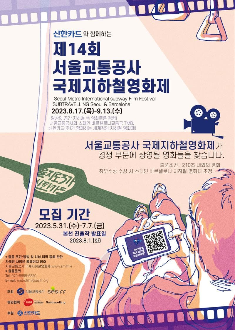 제14회 서울교통공사 국제지하철영화제 출품 공모 ○ 공모 기간 - 2023.5.31.(수) - 7.7.(금) ○ 본선 진출작 발표일 - 2023.8.1.(화)