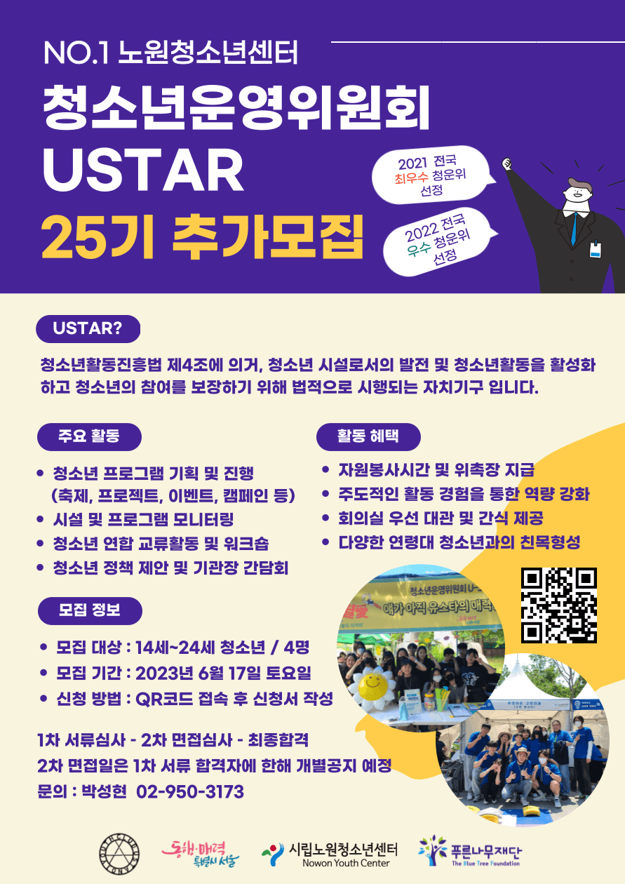 시립노원청소년센터의 반짝이는 별 청소년운영위원회 USTAR가 ⭐25기 위원 추가모집⭐을 진행합니다