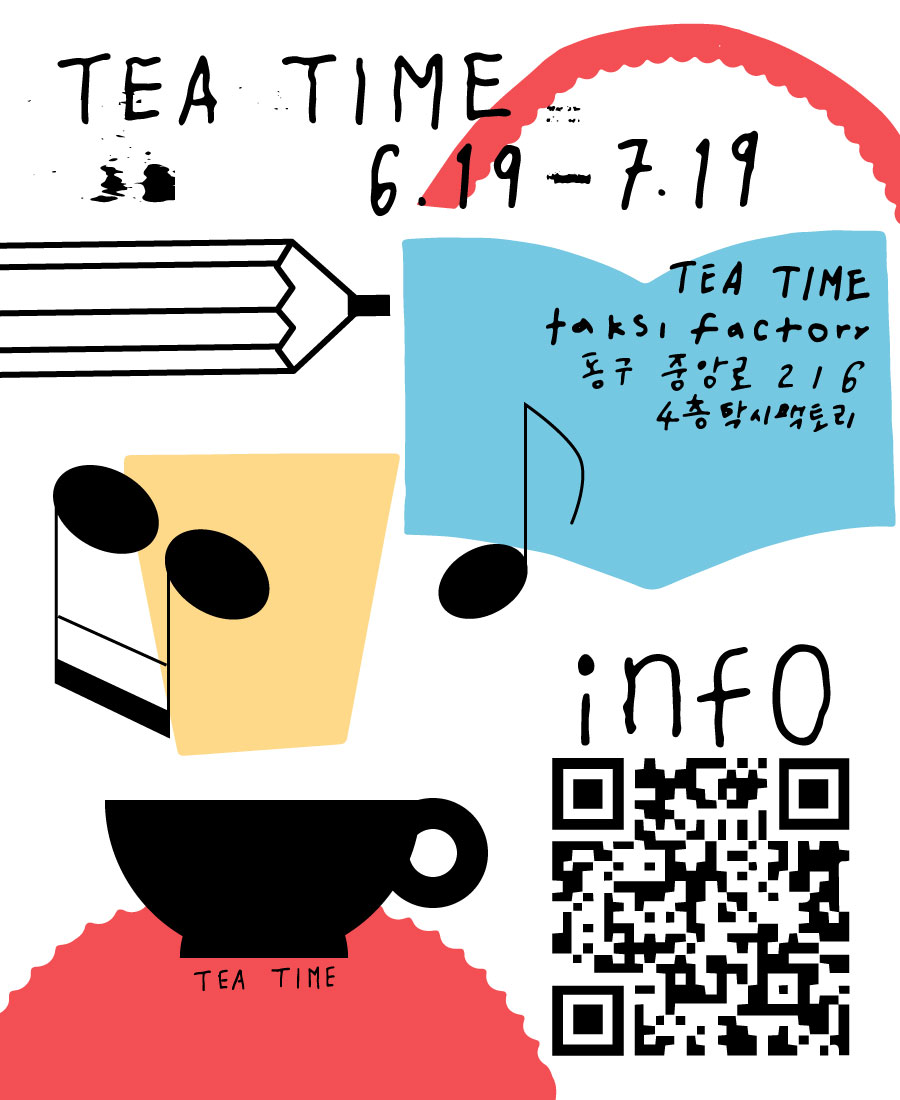 'Tea time' 프로젝트는 평소 작업실에서 차와 음식을 나눠먹는 행위를 사람들과 함께하며 우리의 작업과 이야기를 공유하는 프로젝트 입니다.
